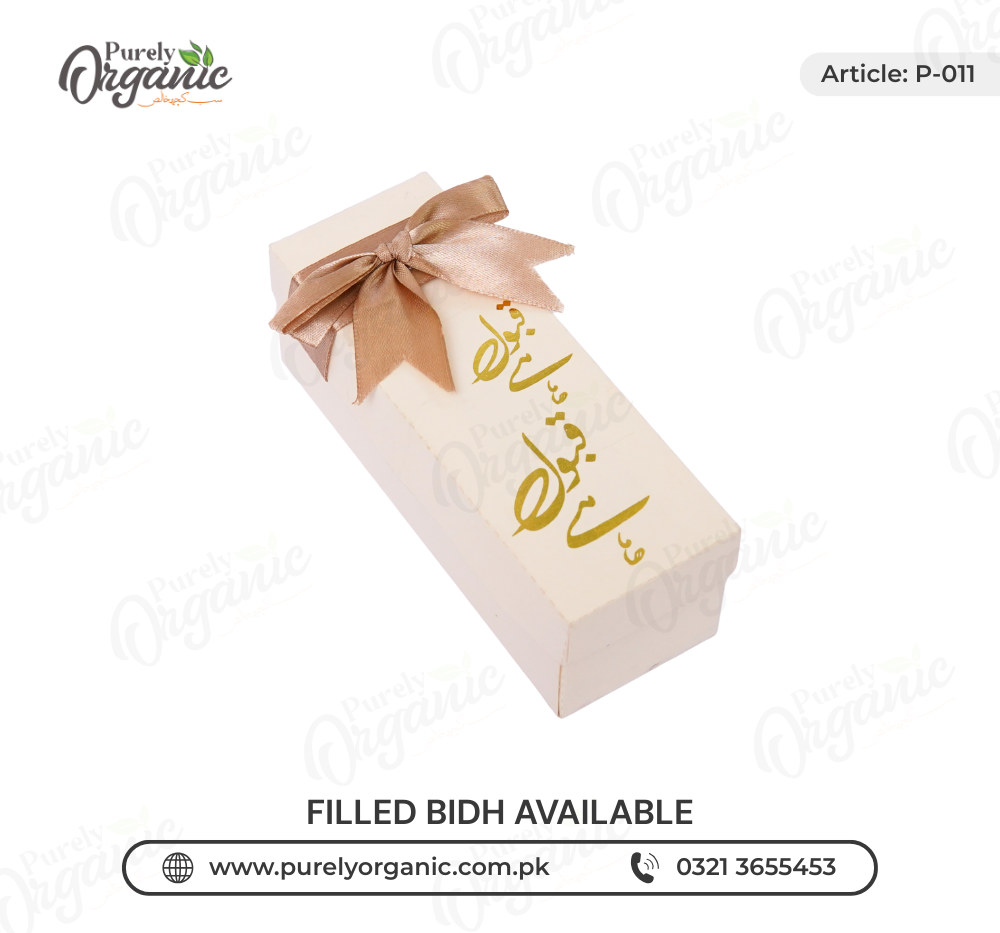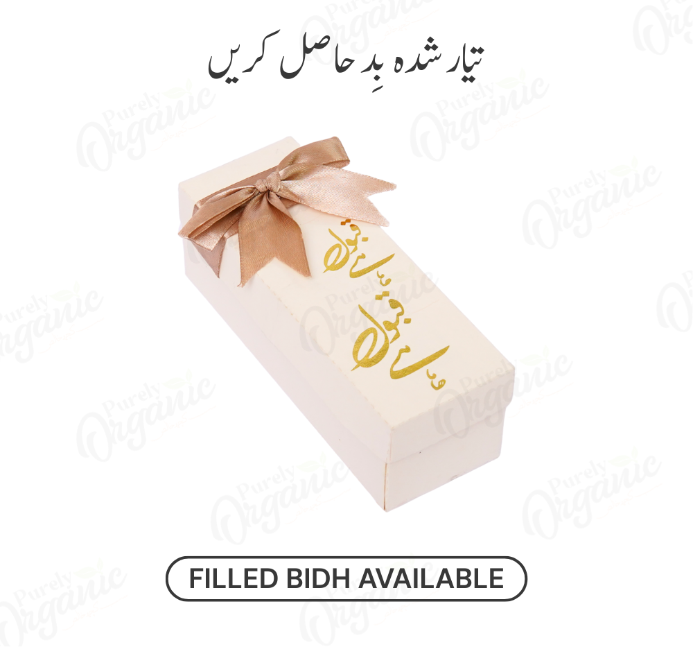 The Golden Custom Filled Nikkah Bidh Box is a luxurious gift solution, wrapped in shimmering gold and filled with premium, hand-selected dry fruits. Fully customizable with names, dates, or event details, it offers a ready-to-serve, stress-free way to honor your guests with elegance, tradition, and a personal touch for your nikkah celebration.