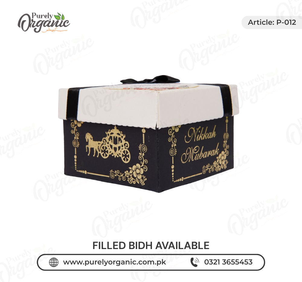 Make a grand statement with the Regal Bloom Filled Bidh Box: a luxurious blend of majestic design and cultural charm. Featuring a rich floral pattern with regal detailing, it’s an ideal choice for celebrations where sophistication and tradition come together.