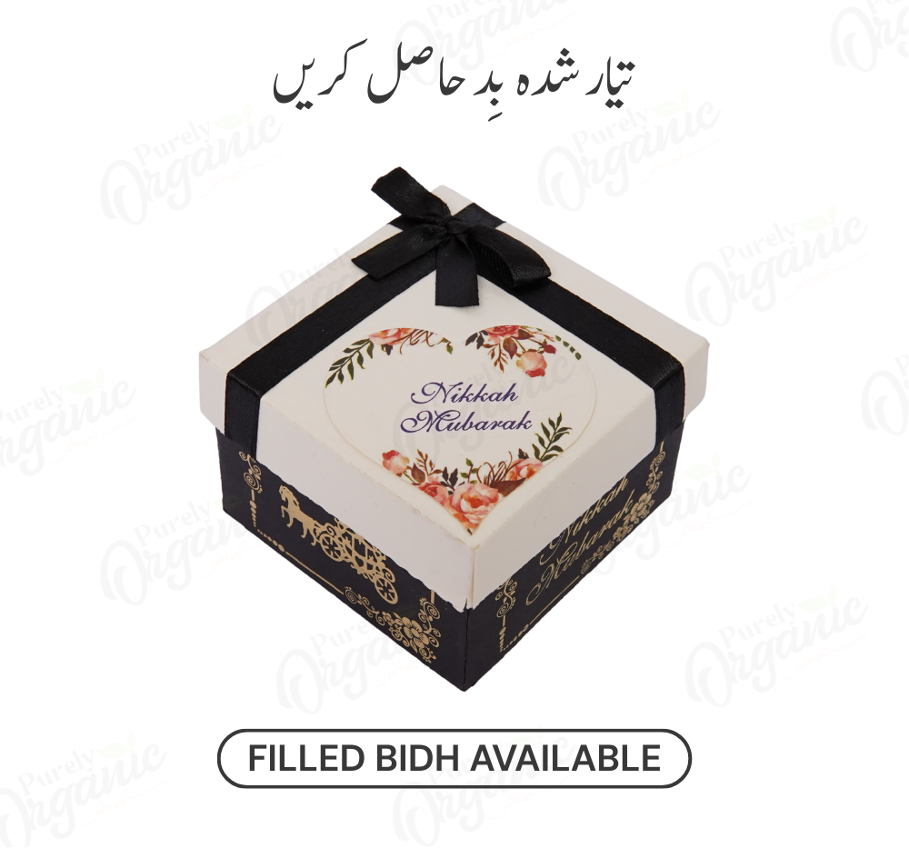 The Regal Bloom Filled Bidh Box is a royal-inspired floral masterpiece, filled with premium, hand-selected dry fruits for a luxurious gifting experience. Perfect for weddings, nikkah, or high-end celebrations, it offers a ready-to-serve, hassle-free way to honor your guests with elegance, tradition, and superior quality.