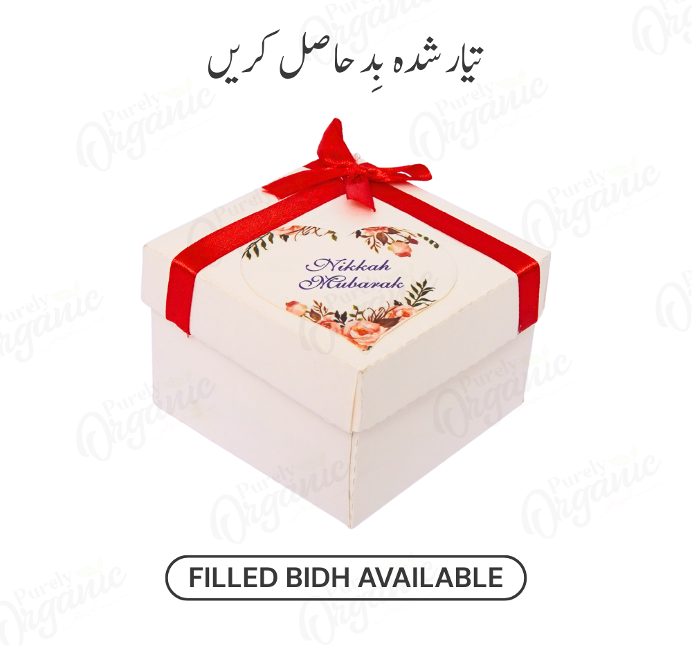 The Serenity Filled Bidh Box is a calming and elegant gifting choice, featuring a soft, soothing design filled with premium, hand-selected dry fruits. Perfect for weddings, nikkah ceremonies, or festive occasions, it offers a ready-to-serve, hassle-free solution that blends peace, tradition, and quality for your guests.
