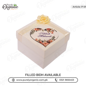 The Serenity Filled Bidh Box is a calming and elegant gifting choice, featuring a soft, soothing design filled with premium, hand-selected dry fruits. Perfect for weddings, nikkah ceremonies, or festive occasions, it offers a ready-to-serve, hassle-free solution that blends peace, tradition, and quality for your guests.